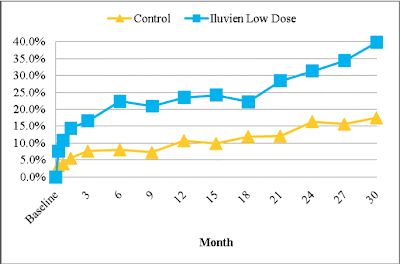 The 24-month analysis demonstrated statistical significance with 26.8% to 30.6% of the low dose patients having an improvement in BCVA of 15 letters or greater over baseline and 26.0% to 31.2% of the high dose patients having an improvement in BCVA of 15 letters or greater from baseline. In addition, both the low and high dose Iluvien showed greater numerical efficacy at month 24 than at month 18, a requirement for NDA submission with 24 month data in the United States.