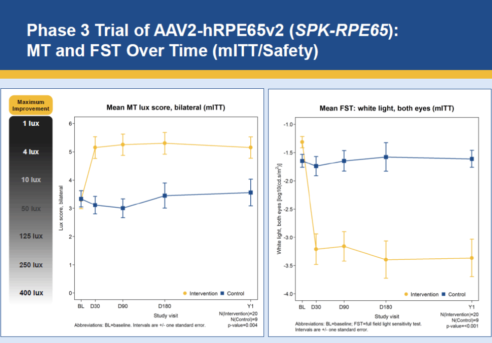 Figure 1: Phase III Trial of SPK-RPE65: MT and FST Over Time (mITT) |