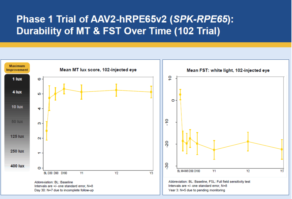 Figure 2: Phase 1 Trial of SPK-RPE65: Durability of MT and FST Over Time |